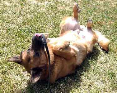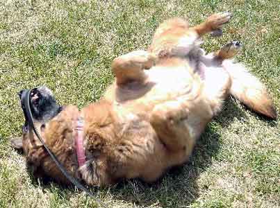 During her evaluation we were initially very sad to see a gal that did not seem happy and in need of medical attention. She started out very "flat"..no eye contact, not much interested in her surroundings. It was obvious that she was in pain, possibly part of the reason for suddenly wanting to keep another dog at a distance. As the afternoon progressed, Bella J began to "come alive", particularly upon seeing other dogs in the park. She was very responsive to leadership despite wanting to get closer. She did not seem to know much in the way of basic commands or has developed 'selective hearing' but with some coaching did finally comply with a sit. As she warmed up and relaxed Bella J dropped into a happy roll obviously enjoying the feel of the grass..followed by a belly rub, she finally smiled and a sparkle returned to her eyes. Seeing her celebrate just being out of the house was incredibly rewarding.