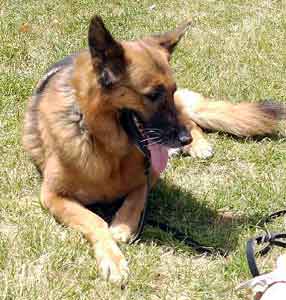 Bella appears to be a plush coated female out of, primarily, West German show lines. We have estimated her age at 9 years, however, dogs that have had a rough life can appear older than they are and vice versa. Her ears show signs of having been fly bitten..an indication of being outside unattended at some point. She has a good size growth on her rear paw and we think her eyes need attention as well. Her arthritis could just be age related and exacerbated by lack of low impact exercise. Bella's Mom is struggling and not able to provide the veterinary care we think she needs. We are willing to provide that care once we have physical possession of her but that means Bella must have a foster home asap. Mom is also concerned about the discord between the two dogs and the potential for injury. An only dog, I'm the Queen Bee situtation with someone home a lot would be ideal. We desperately would like to see this senior experience her Golden Years surrounded by the time and attention she so deserves. Bella J is spayed, vaccinated, micro-chipped, crate and house trained. UPDATE MAY 2nd: While we have not yet found a foster home for Bella J, we simply can't stand the thought that nothing is being done for her in terms of her health. so we are getting her to our vet for a thorough exam and some comprehensive blood work... for starters. If there is nothing going on systemically, then we will consider surgery to address the growth on her foot but we have to know if she is healthy enough to withstand that surgery. Her initial appointment is scheduled for Friday, May 6th. UPDATE: Bella had a full exam, blood draw for her labs and eye exam with stain today. We should have the results of all of her tests by Monday or Tuesday. She weighed in at a surprising 80lbs. Aside from saying no to a blood draw from the neck, she was tolerant and passive.