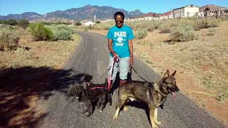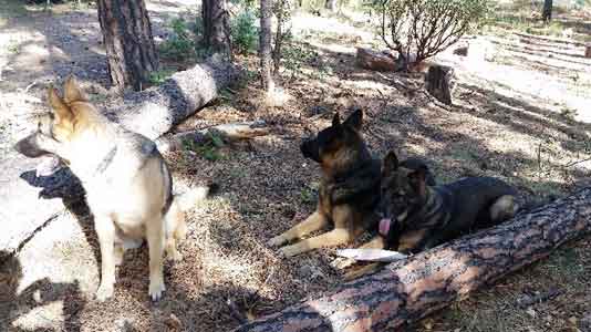 The rest of her report was glowing. He has spent considerable time in the house and is adjusting really well. He spent some time with his foster family on a guest ranch around a bunch of other dogs, insidoors, and was totally dog neutral. Most of the dogs were females but we don't think it will be much different as long as another male does not show dominance or aggression, which as in the case of any self respecting GSD, Ric will stand his ground. He has also permitted inspection and handling of his entire body, without protest.