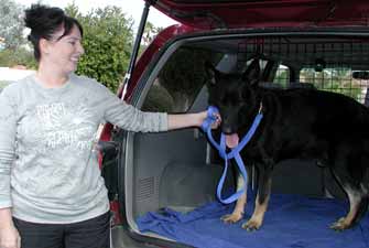 Heart weighed in at 87 pounds; exactly where we said he should be when rescued at 64 pounds! He is doing beautifully with his Rat Terrier friend LillaBit, walking on lead like he's been doing it all of his life. Heart was left alone and loose for a little over an hour today (a bit risky if you ask us ;-) and was a good boy...no damage, no accidents. He's a happy and calm guy, easy to live with and as do most German Shepherds, loves to go with and ride in the car.