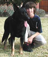 Despite his lacking past, he did well with Lil Bit, an 18 pound Rat Terrier. He's never learned any manners so he comes on strong and barking and must be introduced to unfamiliar dogs slowly and appropriately. He simply doesn't know any better. Nonetheless, he has an even, confident temperament, shows no aggression at all, and as do most GSDs, wants to be near his people. He's not real kissy face...yet...have a feeling that might change ;-0)