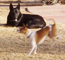 Heart is better than normal...running, playing with Lila Bit. He seems to be celebrating something! We think we know why; Dr. Visser said that he had a mouth full of exposed nerves. If you've ever been there, you know how just ONE feels! With that kind of pain gone, Heart has good reason to celebrate. Photos of his land mine of a mouth will be posted shortly.
