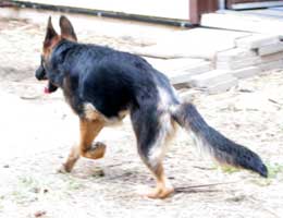UPDATE 8/14: In addition to swimming and as part of her rehab, Lady has had regular chiropractic and acupuncture treatments. This past week she started on a new cold laser therapy for which one of her vets was recently certified. Both her foster Mom and the vet don't think Lady is ambulating the way most tripods do; she seems to be moving all of her weight to the rear. As a result, her gait is off and she is not building the shoulder and leg muscle she needs. We will likely do X-rays of her elbows but will first bring her to Phoenix to confer with our friends at Canine Physical Rehabilitation of the Southwest for an evaluation and recommendations. Otherwise, "Ali" is making up for lost puppy time and getting into as much trouble as she can along with doing her best to annoy her canine roommates...playing does not seem to be one of her challenges :-) |