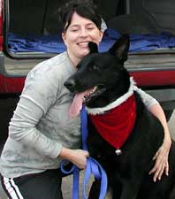 Join us in celebrating Heart's new beginnings. There's lots more work to do, so it will be fun watching him progress. His foster Mom Tracy has agreed to go to school with him and bring him out to the park for supervised socialization. Big hugs to Tracy and her son Chris for taking Heart on and granting our wish for him to have a home for the holidays!
