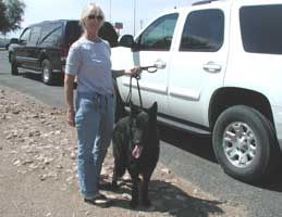 UPDATE 8/9: AL is doing fine, behaving like a normal happy dawg and getting into trouble like a little boy GSD should (stealing things off the counters, etc.). No nasal discharge, no trouble breathing. He'll be visiting the vet again on Tuesday for a recheck and weigh-in after which we are hopeful he will be ready for transport to Phoneix..please stay tuned... UPDATE 8/11: WE DID IT!! AL had an exam, blood work and X-ray again today and he's perfectly NORMAL in all respects! He has a tiny amount of consolidation in his left lung but was otherwise totally CLEAR....Vet said that his X-rays looked like they were from a different dog. His white count, which had risen to 35,500 was down to 16,500 since we changed his meds. The bronchodialator will be withdrawn as of today and he will remain on his current antibiotics for another week. An additional chest film in 10 days or so is recommended. We have not received the final Tucson bill yet which will include his subsequent follow-up exams, O2, RXs, X-rays, IV's and lab work but we're bracing for a hefty sum. The important thing, however, is that AL is now ready for transport to the Phoenix area and his new foster-to-adopt home. THANK YOU ANGELS!! Please watch for his arrival next week. OH, AND he weighed in at just under 71pounds...he was 57lbs on day one at the hospital :-0) UPDATE 8/24: AL's foster family will be out of town for 4 days through next weekend so we've decided to wait until their return to move him. Please stay tuned for updates
