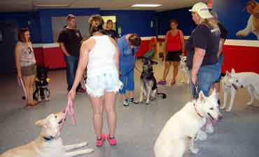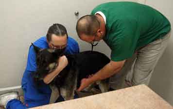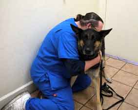 Observing a new dog under stress while being invasively handled by strangers is a very valuable opportunity to further evaluate each dog's temperament and tolerance levels which is one reason why we use private veterinarians that do not take the dog 'in the back' or away from us.