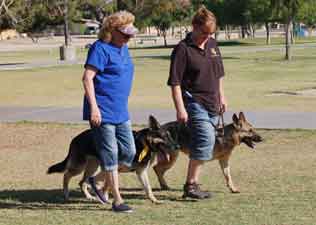 Pictured: AXL walking with Bella and being a "good dog" for foster Dad Nick.