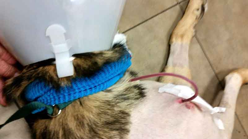 We finally found the right combination of meds to keep him quiet...hope it lasts He did have a drain malfunction last night...the bulb broke, lost suction & stopped draining...his leg swelled up and since it was at night, we had to take him to the emergency clinic. They said he would be OK til morning. We arranged to pick up a replacement part 1st thing this morning and his sleep deprived and devoted foster Mom, Darlene, was able to successfully get it hooked up again right away. We are pushing toward the $10,000 mark for Cedric's total expenses and we're not near the finish line. Our hope is to have an uneventful two weeks of initial healing after which he can move about more freely. Keeping this busy boy quiet is no easy task. Time will tell... Update Late Oct 2nd: Ric was scheduled to have his drain removed tomorrow, Monday. The results of one of his cultures, however, just indicated a bacteria present that is resistant to his current antibiotic. So his medication will be changing and his next trip to the O.R. postponed until Wednesday.