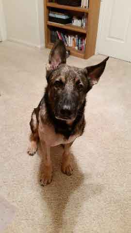 The rest of her report was glowing. He has spent considerable time in the house and is adjusting really well. He spent some time with his foster family on a guest ranch around a bunch of other dogs, insidoors, and was totally dog neutral. Most of the dogs were females but we don't think it will be much different as long as another male does not show dominance or aggression, which as in the case of any self respecting GSD, Ric will stand his ground. He has also permitted inspection and handling of his entire body, without protest.