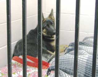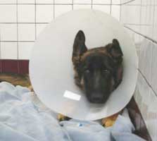 UPDATE: Our special Angel will be transferred to the orthopedic surgeon on Tuesday morning for a 2nd, hopefully leg-saving surgery in the afternoon. We're holding our breath..... UPDATE 5/6: Lady's surgery was scheduled for 3pm yesterday but as luck would have it, an emergency broken back took priority so her three-hour surgery concluded at 10:30PM last night. She tolerated the very extensive procedure well; the pin (the tip of which was making contact with her sciatic nerve) was removed as her bone had given way on one side. There were also bone fragments from the original injury removed from a pocket. She had also suffered considerable muscle damage along with two nerves that had to be reunited. She has a 6-screw plate and her surgeon is "hopeful." That said, there is always a chance of failure. Should that occur, he made it clear that there are no options other than amputation. Lady's post-op protocol will be challenging; she must use the leg in order to maintain and build the muscle she needs to save her leg; on the other hand, she cannot do anything that will jeopardize its' stability and well, she's a puppy. It will definitely be a balancing act for her caretakers. Job one is getting her to eat; her nutrition to date has been primarily intravenous, save for the boiled chicken Nicki brought her over the weekend. Her vet seems to think that her inappetence was pain related and expects a huge improvement by today...we'll see. She's gotta eat to heal. We wish to thank everyone for their support. We might have to hospitalize Lady for the next 10 days at a minimum of $500 per day, plus the surgeon, plus her ICU stay, plus meds and supplements; we're looking at close to $10,000 in expenses, so the need is still great. We will update Lady's progress as often as we can. THANKS and BLESS YOU! QUICK UPDATE MAY 6th: LADY IS DOING GREAT!: Surgeon wanted to keep her all day so our staff member Nicki picked Lady up at 7PM tonight and both are headed home...for now. Vet could not have been more pleased with how she is doing and how good her attitude is; despite all of the traumatic surgery, she is obviously in far less pain than she was....let's hope she is ready to chow down. UPDATE 5/7: After conferring at length with her surgeon, the concensus is that Lady needs to stay in Tucson with 24-hour watchful eyes. She's feeling so much better that it's already difficult to keep her as quiet as she needs to be. She will be in hospital boarding for 10 days, until her post-op vet visit on Monday. May 18th, as Nicki will be out of town next week. Here's Nicki's 1st night foster report: "Lordy, lordy, lordy. We now have a GSD puppy on our hands. One with zero training, or manners but what a personality! Lady came in here full of curiosity, no fear. I would be shocked if she has ever been in a car or a house. She has explored every inch of the house, many times. :) She was initially defensive with my boys, big shock. Hair up, lunging (quite a feat with a recently fixed fracture and wearing a lamp shade). Had her in the den in a crate while we "decompressed". Lady would bark if the boys came near the crate so they made themselves scarce. At bedtime we tried the X pen with a bed in it but she was having non of that. She decided that she could crawl out over the top. So the crate came into the bedroom. She was a bit vocal at first but settled in. At about 1am I took her out and she urinated. Yeaaaaa. Back in the crate, a bit of whining and barking then back to sleep. She stayed quiet until we got up @ 5:30. Urinated again, barked and lunged at the boys again then decided that they are OK. She really wants to run and play and jump and frisk around. So sorry miss, still on leash. I do take the e-collar off when she is out of the crate and she absolutely has to have it, she really wants to chew her incision. There's almost no swelling, there is NO redness, no drainage, it looks great. Long discussion with Dr. Warfield and the consensus is that she should stay at Pima while we are gone. He feels that cage rest for the first 10-14 days could only be beneficial to her. I will find out today what the charges will be. The surgery site looks great, the post surgery x-rays while horrific in one sense, are a complete marvel in another. TK did an amazing job putting this baby back together again. As far as recovery goes, well that is not completely clear. Lots depends on her. TK thinks that the first 3 weeks are the critical weeks. She must have leash/crate restrictions the entire time. Any type of slip or blow the area could cause the plate to fail. He feels that complete bone recovery is going to be at least 12 weeks and longer to build the muscle. Water therapy would greatly enhance full muscle and range of motion. And of course, there is always the temperament issue. TK fully understands the need to socialize this girl and feels as long as it is under supervised conditions, it would be fine. I am taking her to work with me today and at some point I will get some new pictures" UPDATE 5/13: We've been checking on our gal daily while she is being nurtured and monitored on a 24 hour basis by our friends at Pima Pet Clinic; she's doing very well. She did drain a copious amount of fluid several days ago, which we were told to expect, and that was the end of any drainage from her incision. She is able to toe touch and squat, something she couldn't do before and does not appear to be in much pain. Lady is, after all, an untrained puppy so she can be a handful and does not take kindly to confinement, however, her techs say that she has the routine down pat and she lets everyone know when her afternoon walk time arrives. She's eating like a little pony. We are very eager to see what her surgeon has to say on Monday when Lady has her first post-op visit and next update. Her Tucson foster Mom will return from her trip and hopefully take her back home for the weekend. UPDATE 5/18: We are devastated; Lady's repair failed despite he