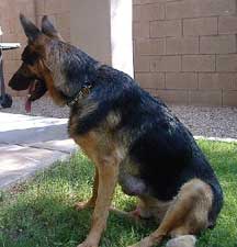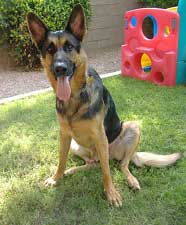 German Shepherds housed outside frequently do a good deal of munching on rocks, fences, etc. out of boredom, frustration or anxiety. Logan's teeth are pretty worn down giving the impression of an older dog. We. along with our vet, think he's about 3 years old.