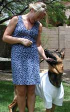 He's a soft and sensitive guy requiring very light corrections (if at all, so far) and a gentle touch. He sits, downs and walks well on lead. He will shadow his person everywhere and wants very much to please. Logan is a calm spirit.