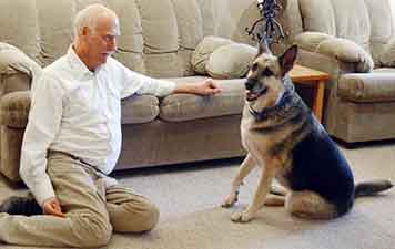 They were told that "Grandma" got her from someone else about 3 years ago, however, Grandma was now having health issues and was forced to move in with daughter to an apartment that does not permit large dogs. No info on the previous owner. Leila was immediately taken to the vet for vaccinations and wellness exam as she was morbidly obese. Clearly she had little to no exercise or much human interaction and lacked socialization. Despite what she missed out on, she is calm, obedient, friendly, and a very quick study. She is down 20lbs so far and has just a few left to go. Needless to say, since the weight loss, she's a different, much more active, high energy gal. Her foster folks have fostered many GSDs while working in conjunction with a rescue in Washington state where they had a summer home, but they have not been involved with things like evaluations, dog intros, training, socializing, etc. We have been in constant contact, tutoring, guiding and addressing questions for Leila's very dedicated and eager-to-learn foster couple as well as Leila herself. Job one began with walking, which confirmed her lack of socialization, leash-work, or formal training, so we went from there. She now knows her basics (sit, down, come, not sure about "stay" yet) and learned "heel" in a snap. Michael usually walks her a few times every day and it's a lot more enjoyable now.