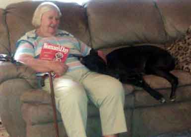 |   May was a rough month for our dear friends and Vegas fosters Phil & Becky Gang. They lost their precious Zoe after nine wonderful years and a long battle with Degenerative Myelopathy. As a puppy Zoe had been in training as a guide dog for the blind but washed from the program due to allergies. Becky and Phil never let a physical challenge stand in the way of adoption and took her as their own at eleven weeks of age.