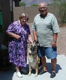 Rainee's Mom passed away just under two years ago; what to do with her 10 year old senior GSD? In stepped her Mom's friend and our adopters and volunteer, Sharon and Dan Girardin.