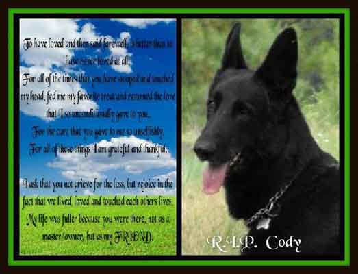 We have had him as long as we have had our daughter Jenna. He was my third German Shepherd I have had in my life and was by far the best one. We loved him so much and as I am writing this e-mail I am crying.