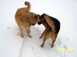 Daja and Bandit (left) waiting for the Veterans Day Parade to start and being silly (center), Christmas 2010
